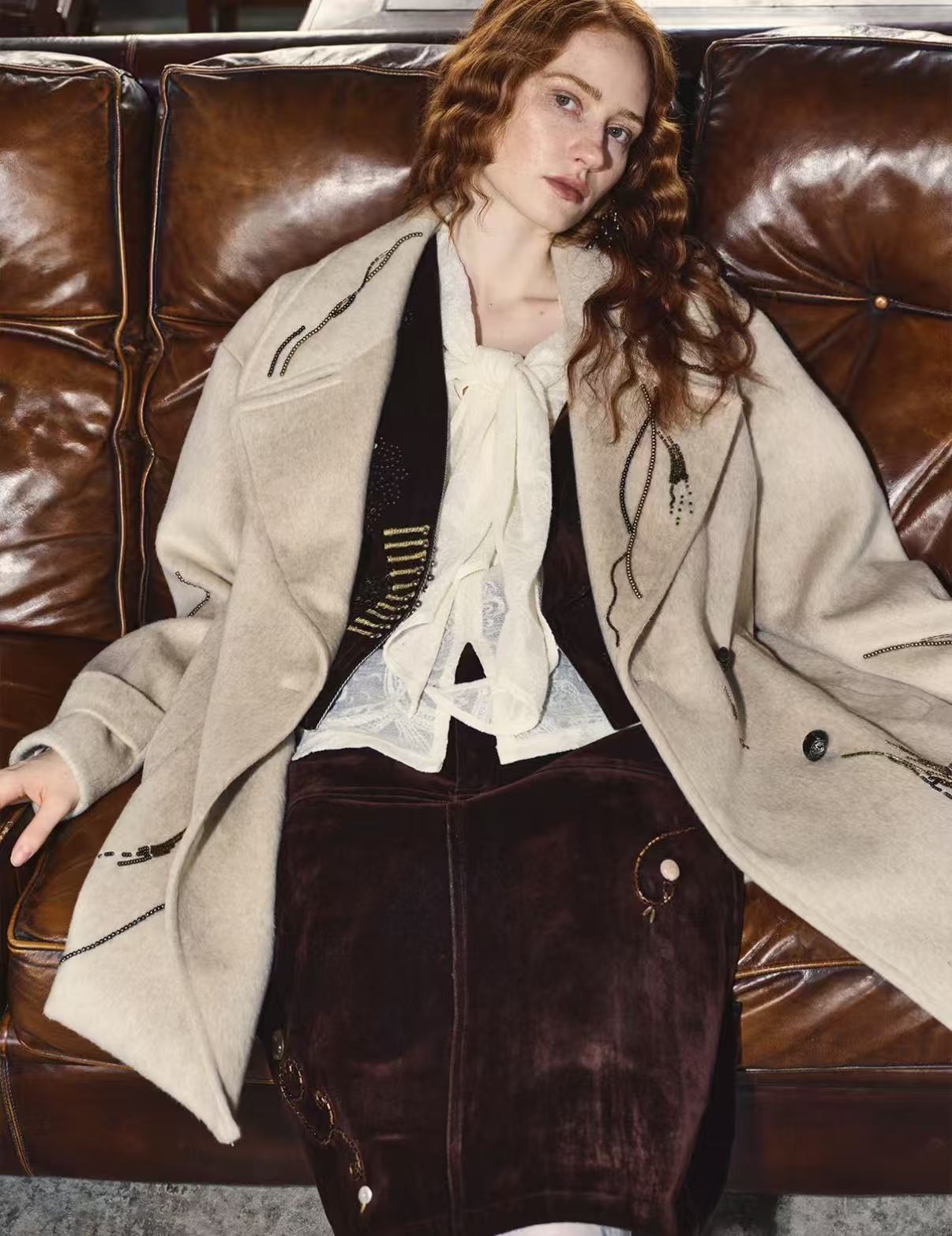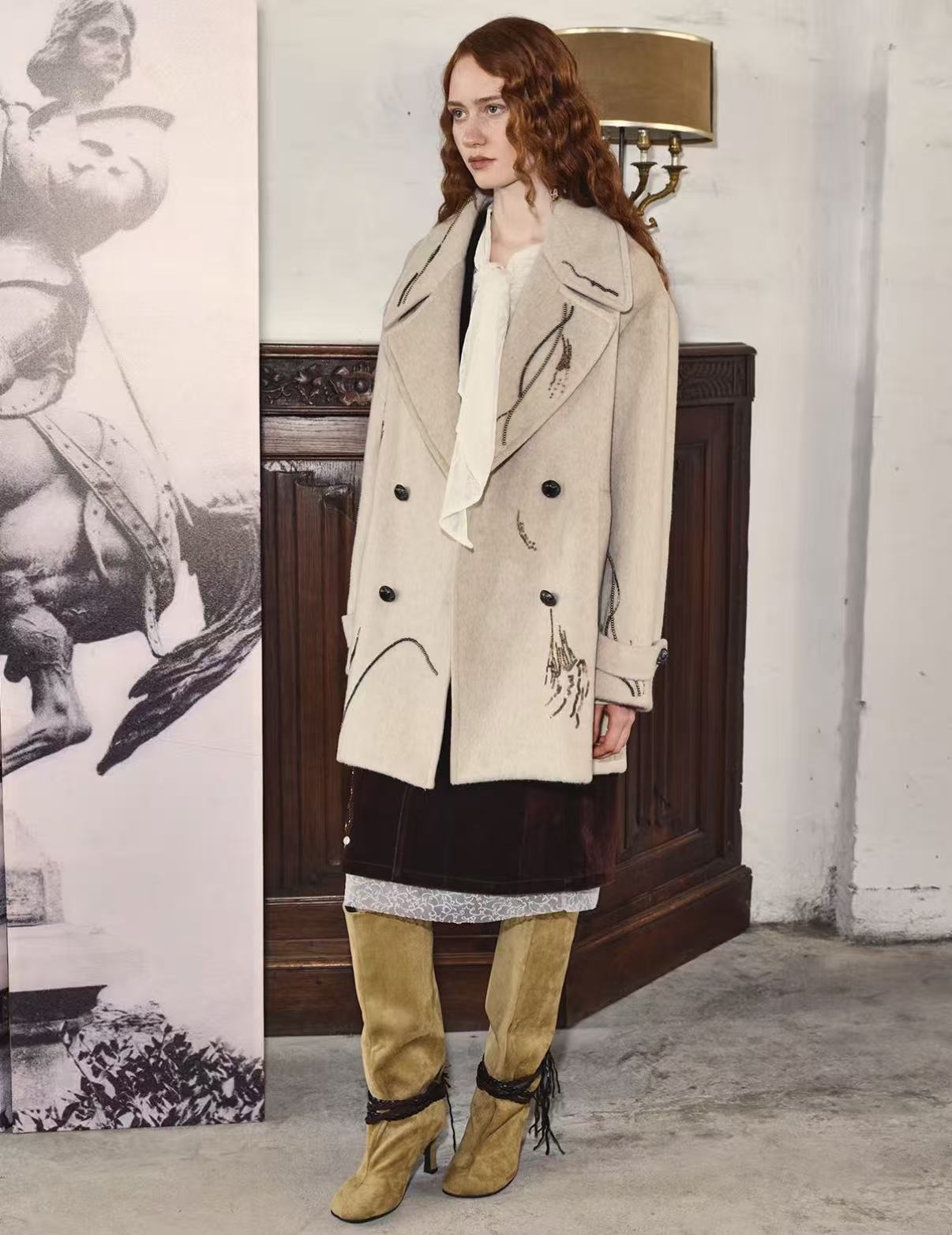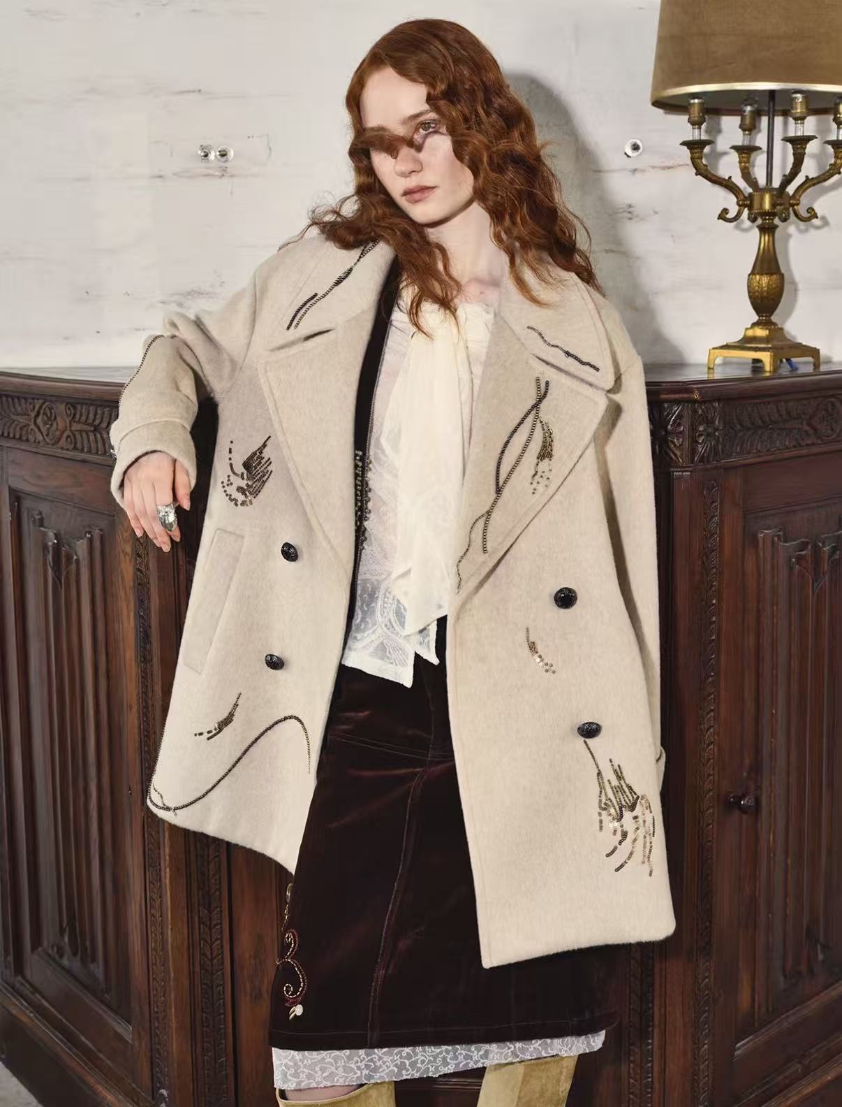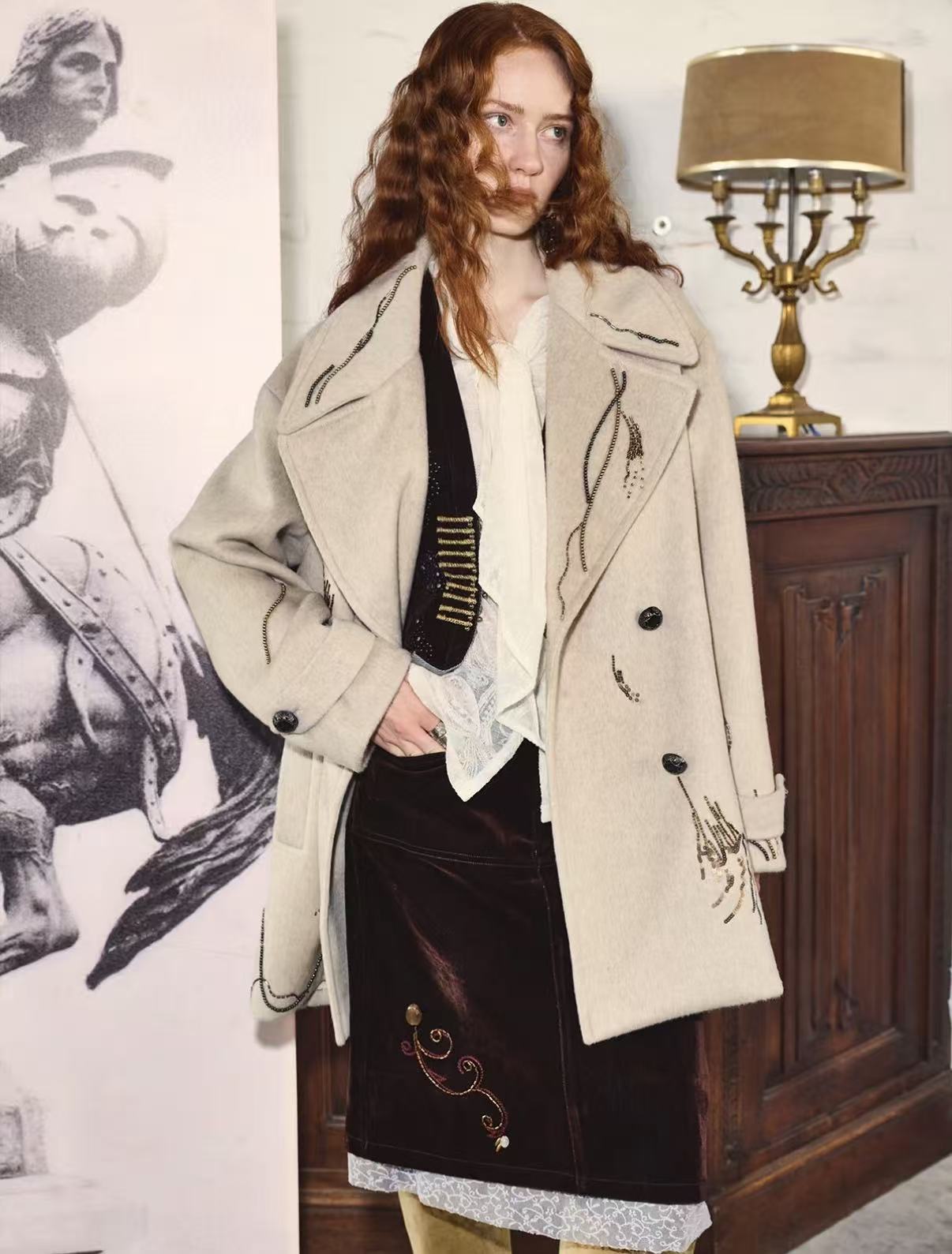 Heritage Glow – Beaded Double-Faced Wool Coat